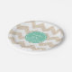 Customisable 85th Birthday Party Paper Plate with chevron and customisable colour into round tag. You can easily change background colour ((here aqua mint colour) and text colour (name), font, size and position by clicking the customise button. Matching Chevron Birthday paper Napkins, birthday save the date, invitation and guest book. Don't forget the whole collection.