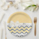 Fun black, yellow and white theme with trendy geometric chevron zig zags and polka dots. Customise name text or delete if you prefer these paper plates without.