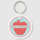 A gift for teachers featuring an illustration of a red chevron apple over a light blue quatrefoil background.  Personalise with your name on apple.