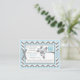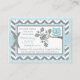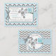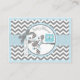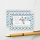 Grey and white chevron print background with blue accents and owl on oak tree with acorns and 3D-look polka-dot bow and trim band whimsical read a book card design.