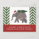 This cute and trendy Christmas postcard shows an elephant wearing a Santa hat and carrying a Christmas tree, with a baby elephant beside him. All done in traditional holiday colours of red and green but with a modern spin! A great way to inform friends and family that you have moved, while sending your holiday greetings at the same time.