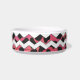 This is a heavy, durable bowl decorated with Tibbies of many colors, the perfect size for hungry/thirsty Tibs. The design is interesting and printing clear.