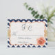 Love is in bloom! These lovely chevron garden RSVP insert cards mix boho chic with elegant glamour to celebrate your beautiful occasion. Perfect for any reply, insert, RSVP, menu or other small card design need, you can personalise the text and the optional initials on this design to suit your style. For your own classic navy blue & coral card design, the floral graphics & background can even be changed if needed. Pair with our matching invitations and address labels for a finished set.