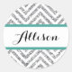 Trendy chevron pattern in silver glitter and teal blue. Circle sticker name labels are perfect for labelling personal objects.