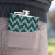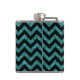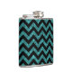 Hip and trendy Chevron Glitter Look Flask. This cool flask features a chevron zig zag pattern on top of a digital art turquoise glitter background.