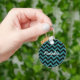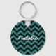 Hip and trendy Chevron Glitter Look Keychain. This cool keychain features a chevron zig zag pattern on top of a digital art turquoise glitter background. Add text to this design to give it a personal touch.
