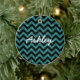Hip and trendy Chevron Glitter Look Ornament. This cool ornament features a chevron zig zag pattern on top of a digital art turquoise glitter background. Add text to this design to give it a personal touch.