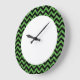 Hip and trendy Chevron Glitter Look Clock. This cool clock features a chevron zig zag pattern on top of a digital art green glitter background. Add text to this design to give it a personal touch.