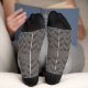 Geometric design featuring a dark grey chevron pattern on lighter gray socks. Color matching space for your name or text.