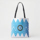 Chevron Monogrammed Ice Blue Tote Bag