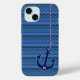 Maritime anchor with a rope on a blue chevron pattern background. A beautiful navy style item to personalize with your initial
