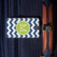 Chevron Pattern Single Monogram - Navy Lime Luggage Tag