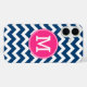 Chevron Pattern Triple Monogram - Navy Magenta Case-Mate iPhone Case