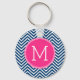 Chevron Pattern with Monogram - Navy Magenta Key Ring