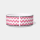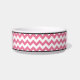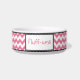 Stylish ceramic cat bowl designed with a pink & white chevron zigzag pattern and personalised with your pet's name.