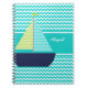 It's easy to personalise this colourful chevron stripe and sailboat notebook with a name before ordering! Features aqua and white chevron stripes with a navy blue sailboat with chevron stripes sails of blue and lime green with white and an area you can easily customise with a name!