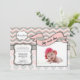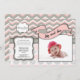This trendy design features a pink, white and grey chevron pattern complemented by a pink, white and grey damask pattern. There is a grey crest for you to customise with your baby's name and last name along with plenty of text to introduce your new baby girl to the world at your Sip 'n See party. Upload your own baby's photo to the adorable pink banner and you are ready to order your trendy party invitations. We also have this design available in blue for boys!