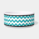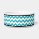 Stylish ceramic dog bowl designed with a turquoise & white chevron zigzag pattern and personalised with your pet's name.