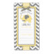 Grey and white chevron print with yellow accents and polka-dot bow and trims with yellow elephant with bow-tie and bird book plate label design.