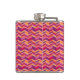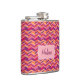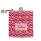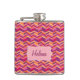 Trending zigzag designed flask in bold pink, orange, red and yellow hues. Cute pattern id hip flask by Sarah Trett. Customise with the name of your choice, currently reads Helena.