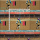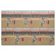 Cheyenne Rodeo Cowgirl Barrel Racing Fabric . Rodeo arena with Cheyenne text on the roof and a barrel racer. Please note that this design has a textured look (see the close up) This is part of a collection with different rodeo events with this same rodeo arena background.