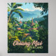 Chiang Mai Thailand Asia Temples Mountains Vintage Poster