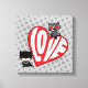 Check out Chibi Catwoman pouncing on Chibi Batman in this adorable graphic, featuring a giant red heart with the word "Love".