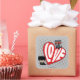 Check out Chibi Catwoman pouncing on Chibi Batman in this adorable graphic, featuring a giant red heart with the word "Love".