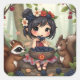 Chibi Fairy Eating Blackberries with Forest Friend Square Sticker