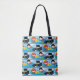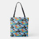 Chibi Flash, Superman, and Batman Racing Pattern Tote Bag