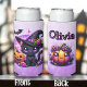 An adorable personalised Halloween can cooler that features a cute black cat in a witch's hat with a pumpkin. bat and cute purple and orange elements. Lots of black, purple and orange elements. Just add a name in the personalise area!