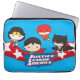 Check out Chibi Wonder Woman, Chibi Superman, Chibi Flash, and Chibi Batman gathered around the Justice League of America logo with red and white stars.