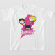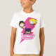 Check out Chibi Supergirl, Chibi Wonder Woman, and Chibi Batgirl gathered around a pink Justice League logo in front of a pink lightning bolt.