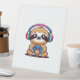 Chibi Kawaii Sloth Gamer – Cute Funny Animal with Pedestal Sign