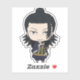 This chibi-style illustration features a confident and mysterious warrior with long black hair, inspired by samurai and sorcerer esthetics from popular anime. Wearing traditional robes and holding an object of power, this character's sly expression and detailed design embody strength and mysticism. Perfect for fans of anime, manga, and kawaii chibi art, this piece adds a bold and charming vibe to any collection. A must-have for anime enthusiasts and collectors!