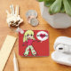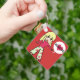 The key chain is made of metal and really sturdy. The flower design is really cheerful. The logo and colors are clear and crisp!