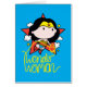 Check out Chibi Wonder Woman flying in the clouds with her lasso, spelling out her name with her rope, against a red star backdrop.