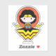 Check out Chibi Wonder Woman standing atop her WW Logo, with lightning bolts, red polka dot backdrop, and her name written overhead.