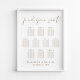 Chic wedding seating chart downloadable poster for up to 10 tables featuring "find your seat" in a stylish gold script, the table numbers and names of your guests in modern gold typography and your names and wedding date in elegant gold serif typography.