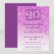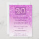 Step into your twenties with style! This chic 20th birthday invitation features a vibrant pink glitter gradient and a sophisticated sparkling “20” emblem.
