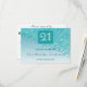 The front card features falling Teal Blue Glitter on a Teal Blue gradient with shiny stars. The gold and Teal Blue glitter Number is unique to announce the celebration of her 21st Birthday.