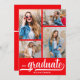 Add your favourite four photos to the front of these graduation party invitations featuring graduate and class of in chic lettering on a red background. MORE designs and colours done in our store including invitations, save the date cards and postcards.