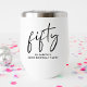 Chic wine tumbler for your 50th birthday party featuring "fifty" showcased in a stylish script and your name in simple, modern lettering.