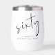 Chic wine tumbler for your 60th birthday party featuring "sixty" showcased in a large script and your name in simple, modern lettering.