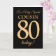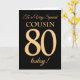 Chic 80th Gold-effect on Black, Cousin Birthday Card