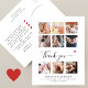 A beautiful modern ´´Insta´´ style square photo grid collage postcard perfect for thanking your baby shower guests for gifts, love, and support received. The modern design features a collage of nine square customisable photos. In between there is a ´´thank you´´ message in a chic whimsical script and a tiny red heart and your baby name and stats, in elegant lettering are on the bottom. On the back is your customisable thank-you message and return address. Through the "personalisation" button you can replace the photos and change the text.