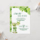 An elegant modern design featuring a watercolor illustration of a lime martini with green olives, tied with a green bow and a cute lime pattern on the back. Customize the details for a unique and chic Birthday Celebration.