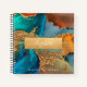 A sparkly, faux gold foil band with your script typography name overlays a rich, gold veined, turquoise blue, and yellow orange watercolor background on this chic, elegant, trendy, custom name square spiral notebook. Personalize with your name. 8 different inside paper designs to choose from. Makes a fun and stylish statement every time you use it. A great gift for a friend, as well as yourself!