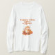 I love this shirt. I had written to the artist asking her if this picture was available on a shirt, and she wrote me back telling me where I could find the shirt. These shirts can be custom made to have a different saying. I loved this saying and went with it. The artist wrote me back later to tell me that she had seen my order go through. How's that for service? Pretty special. It's just as displayed. Perfect!