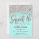 Chic Aqua Rose Gold Scattered Glitter Sweet 16 Invitation